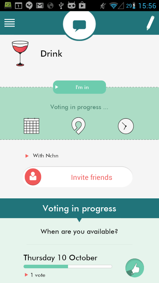 As the event organiser, you first pick what you want to do from a list of pre-defined categories, such as go for a drink, meal, a party, or take a weekend trip. Next you fill out further details, including — crucially — up to three preferred dates and times. Then you invite your friends to join your “popp,” from which they are asked to vote on the time and place, as well as suggest any other changes to the itinerary via the app’s messaging functionality. Finally, you select the chosen date, time and destination, asking everybody to confirm once and for all if they are in or out.