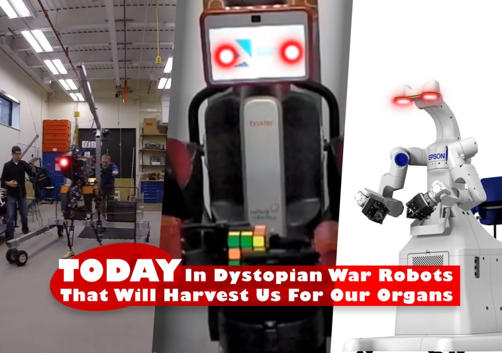 To begin with, we present the two-armed worker robot from Seiko Epson. Designed to work a great deal like the now-famous Baxter, this robot will be available in 2016 and be used to help – and later harm – factory workers in their daily tasks. It can be trained to assist – and later assault – its human counterparts and is, for the time being, called “the autonomous dual-arm robot” and will later be called “My lordship.”