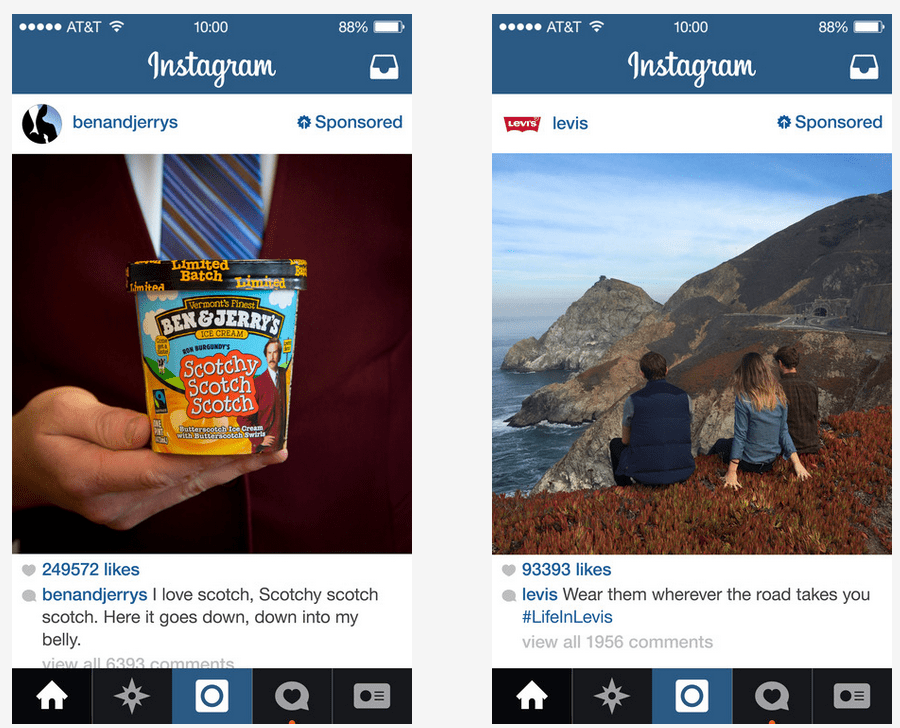 The advantage of these ads for Instagram is that they don’t rely on user clicks, and therefore don’t try to pull people away from the app’s experience. The photo and video app is designed to be a relatively lightweight, relaxing, passive experience where you let the art wash over you. Brand ads of pretty people in jeans, tasty ice cream, and luxurious jewelry fit that format.