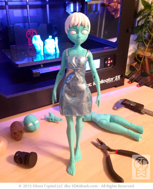 The 3D files will cost $55 once the project funds in January and you can order her pre-printed in ABS plastic for $245. You can also order clothes and other perks from their Kickstarter page.