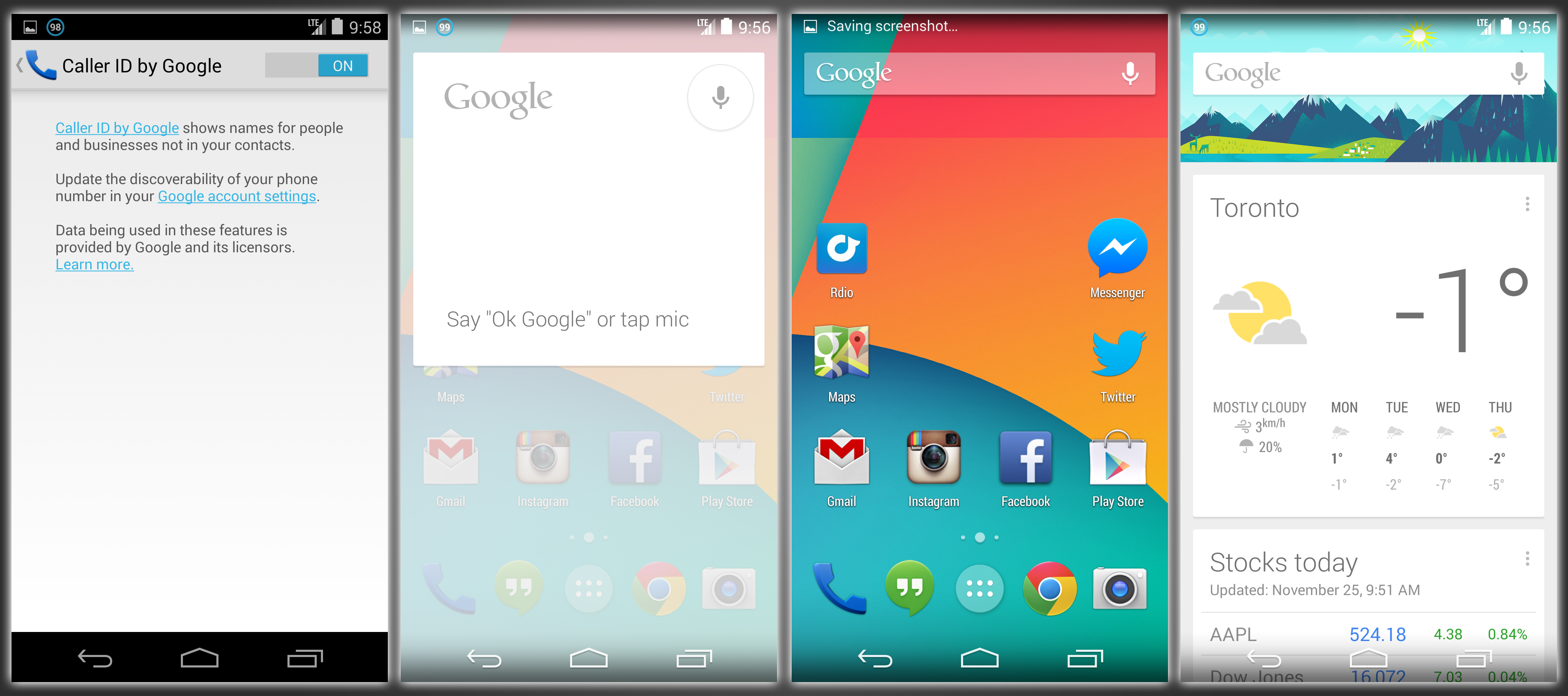 Darrell: What’s really impressive about the Nexus 5 is that it begins to approach the point where you don’t think about Android software anymore, thanks in large part to KitKat, version 4.4 of Google’s mobile OS. KitKat doesn’t change how Android works very dramatically, but the changes it does bring make using it feel a lot more intuitive. Swiping left to access Google Now, for instance, is a much more natural and easily discoverable action for users new to Android than swiping up from the home screen button, which isn’t even a physical button to begin with.