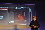 They also showed the new MakerBot Z18, a huge replicator that can make objects at 12x12x18 inches – a truly gigantic build envelope. Pettis said that the company would use the device to make MakerBots. It has an enclosed build chamber and prints in PLA.