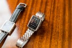 Each new Pebble Steel retails for $249, or $100 more than the standard Pebble, which will continue to be sold. It’ll be distributed exclusively through Pebble’s own online storefront at first, and ships January 28, with pre-orders kicking off today. In the box is the watch and two bands, one leather and one steel link version with a push button clasp. These unfortunately feature proprietary connectors for attaching to the watch, so you can’t just use off-the-shelf standard watchbands. I’d expect to see Pebble release a variety of options later for those who want to change the bands out, which is a page borrowed out of Swatch’s playbook for making revenue on high-margin accessories.