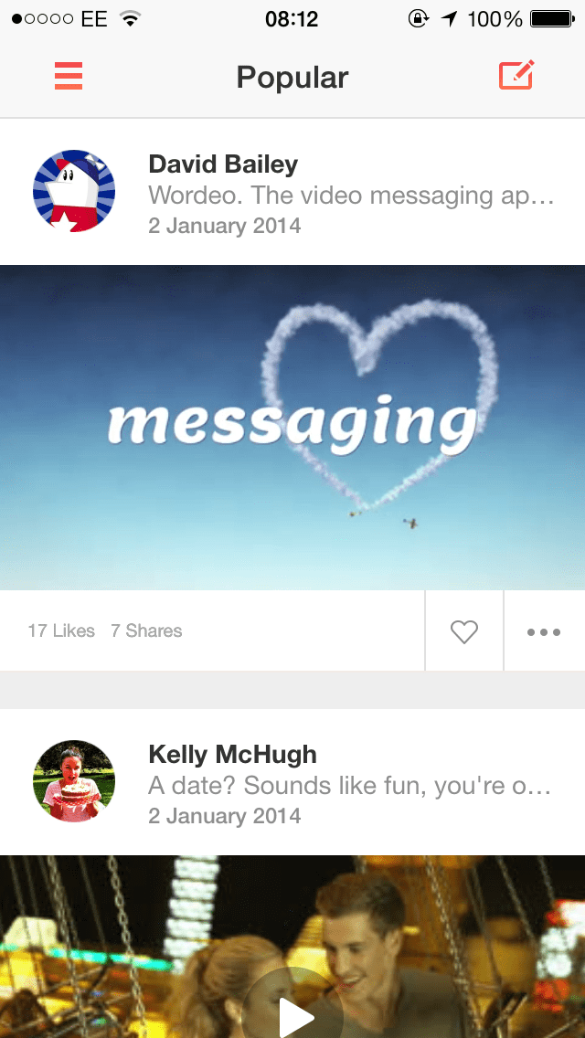 Wordeo has inked an exclusive deal with Getty images for access to its stock video library, giving users of the app six-figures worth of stock clips that can be used to illustrate their missives. Which means Wordeo is a video messaging app where users don’t actually have to shoot any of their own video to use. Ergo, the creative bar is being set much lower than an app like Vine, which requires users to film the content themselves. Hence the more mainstream target for Wordeo.