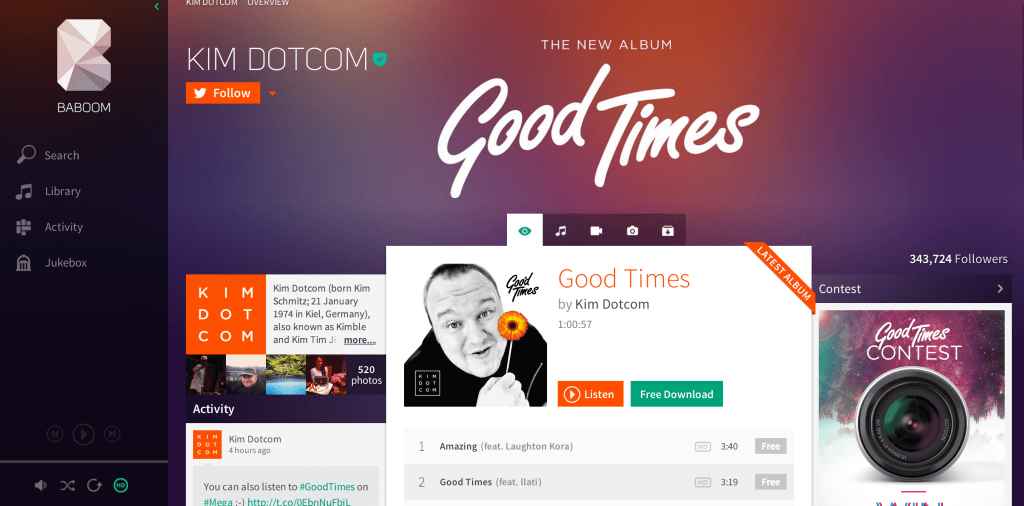 Kim Dotcom of Megaupload fame (or, rather, infamy) and file-sharing service Mega has today offered a sneak peek of his latest project, music service Baboom, which was previously known as Megabox. The site is scheduled to open its doors in late 2014, but this “soft launch” serves as a way for users to check out the service in advance, while also sampling Dotcom’s own album, Good Times.