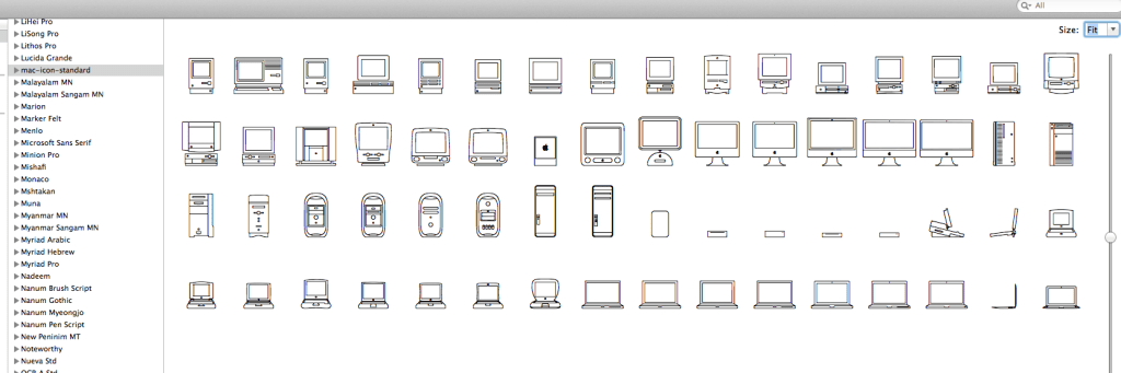 The font uses special private characters so once installed, you won’t be able to just type to use it as you would a normal font, but you can copy and paste the different models from the OS X Font Book application and paste them into other applications. It’s a beautifully designed collection of Macs throughout the years reduced to simple, elegant line drawings, and there’s no telling how long it’ll remain available for download, so if you’re interested in having the collection for private use, it’s probably best to grab it now.