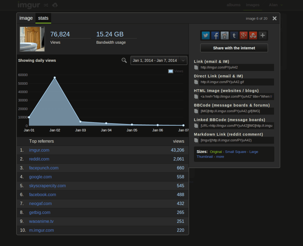 He also notes that Imgur Analytics is for “regular users,” as well – the feature will be bundled into Pro accounts, which are $2 per month at present. That could potentially help Imgur increase its number of Pro users, too.