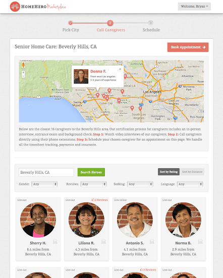 The second is HomeHero Marketplace, through which families managing care for aging loved ones can access a marketplace of hundreds of experienced and vetted caregivers, which includes high-definition video profiles, background checks, social references and customer reviews. Families can also view caregivers by location, plotted on a map, and use HomeHero’s search tool to filter caregivers by gender, number of reviews, years of experience and language.