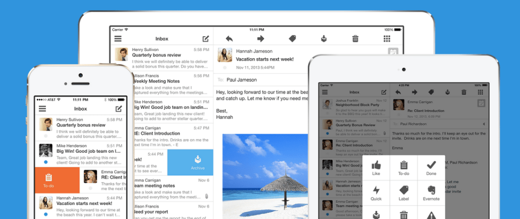 Like Mailbox, Boxer is designed to help users triage their email quickly, with different swiping motions that unlock the ability to archive, delete, or respond to emails later. But the app is also designed to allow users to do a lot more: they can circle in other team members, assign tasks, and add items to a to-do list, directly from their email app. The team has also worked to make the app more powerful by hooking into third-party applications like Evernote, Sanebox, Salesforce, and others.