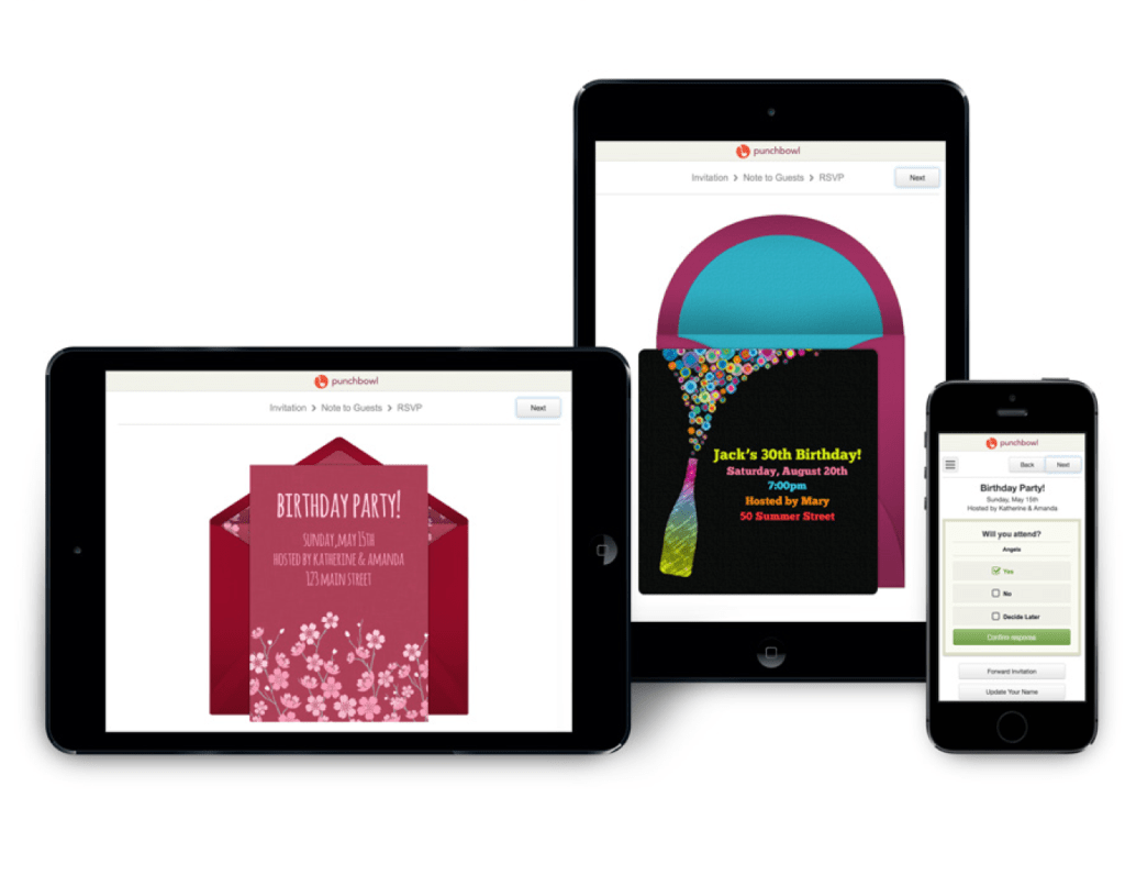 Punchbowl’s digital invitations, for those unfamiliar, first launched in 2011. They’re designed to give an appearance of the paper cards they’re meant to replace, with envelopes that virtually “open up” and even optional gift card inserts which resemble their offline counterparts capable of holding plastic cards.