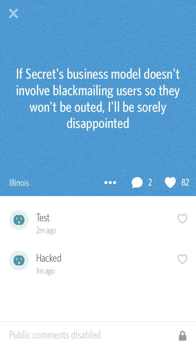 In addition, as Secret.ly co-founder David Byttow points out when we alerted him to the findings, “public comments are disabled to uphold the quality of the conversation, not as a security measure. It may change at any time.”