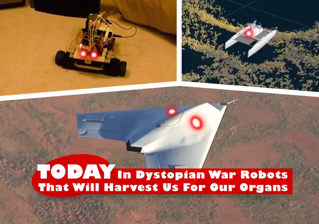 Then we have this autonomous boat that can map hard-to-access rivers and lakes and features an on-board laser scanner and autonomous quad-copter that can get a bird’s eye view. These robots can get into places humans can’t and, more importantly, a fleet of them coupled with an army of robotic sharks with laser teeth can terrorize most of San Diego (the wet parts).
