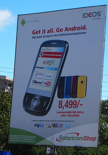 No, really. I give you the MTN Steppa. It’s a pretty bad phone: Android 2.3.5 Gingerbread, 2MP camera, single-core processor, 480×320 HVGA screen. But it’s a genuine smartphone nonetheless, with a 3G antenna, Google Maps, Gmail, Facebook, Opera, and YouTube. And it retails for less than fifty dollars (no contract.) What happens when competing manufacturers try to undercut that? I don’t pretend to know exactly; but I do still believe that most people are underestimating the second derivative of smartphone adoption in Africa.