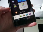 Over the way at Samsung’s hall-sized stand there is no shortage of electronic trinkets for the hoards to eyeball — indeed, as per usual, the Samsung stand positively heaves with gizmos (and hoards). But its latest bauble is not there. The SGS5 is being displayed in a separate viewing area for media only. Sorry, suits.
