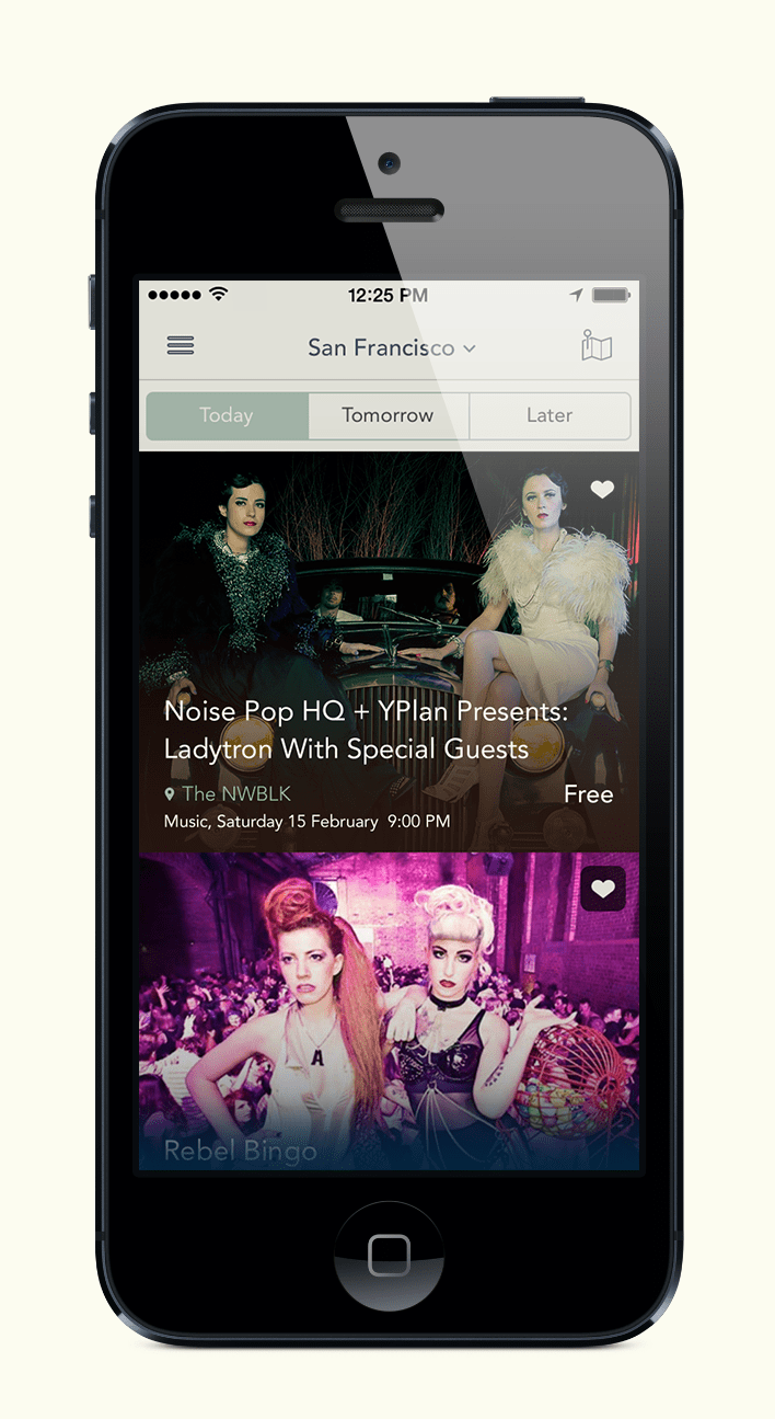 When you first launch the application, YPlan sorts its highly curated selections into “Today,” “Tomorrow,” and “Later” sections, and each event, when tapped, offers photos, a description, ticket prices (if applicable) and a “book it” button.