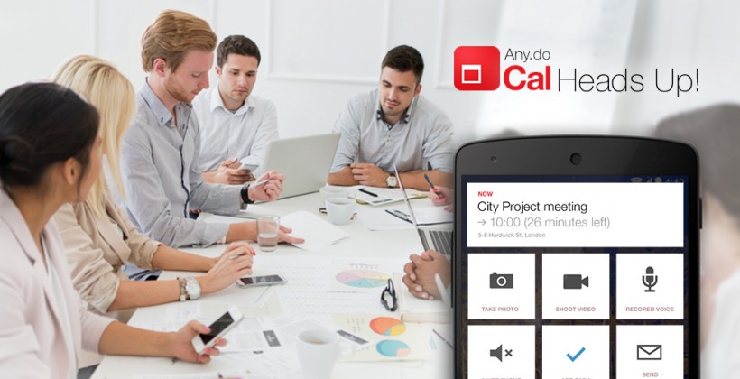 Cal, the smart calendar app that integrates with to-do list maker Any.do, has launched a new feature called HeadsUp that helps you manage meetings and appointments. It is currently available for Cal on Android and will be available on iOS in the near future.