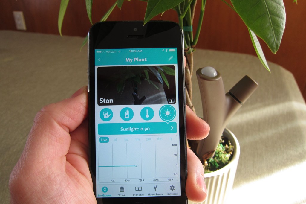 The Flower Power is a small Bluetooth-capable sensor. It runs on a AAA battery and simply sticks in the plant’s dirt. It’s cute and hardly noticeable. The device measures and tracks light intensity, air temperature, fertilizer level and soil moisture. These are things people with a green thumb understand, but the rest of us completely forget about. That’s why there’s an app for that.