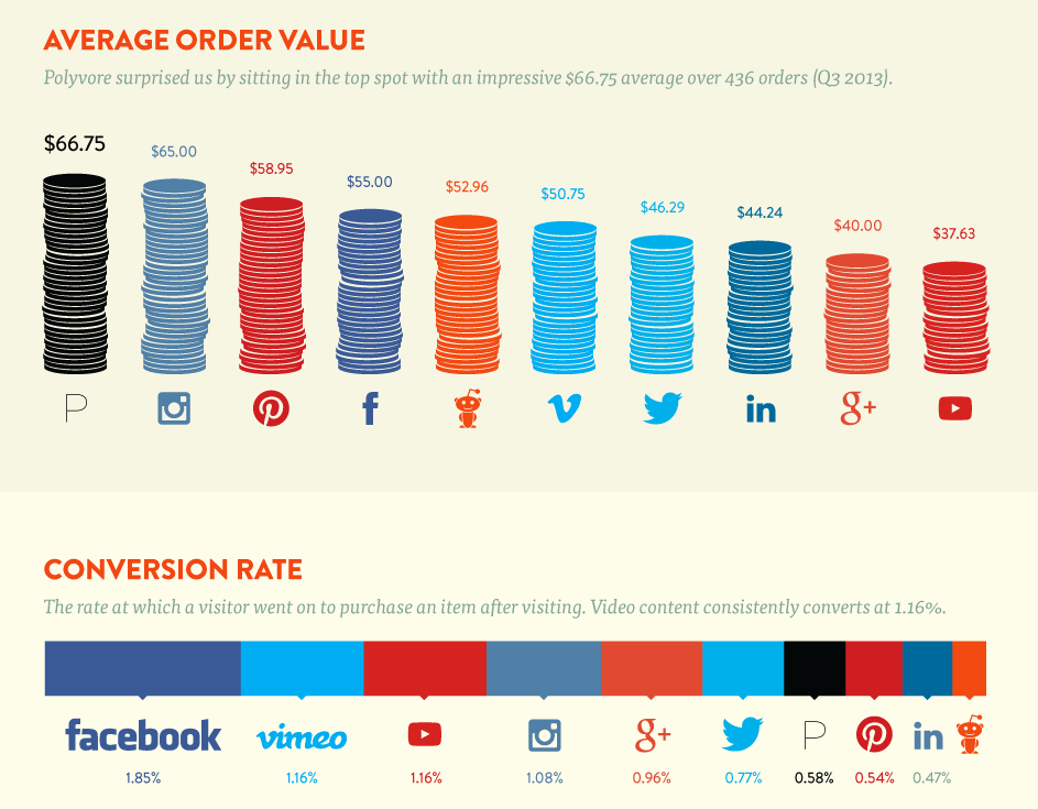Another interesting tidbit: Reddit is the fastest-growing source of orders among social sites, with 152 percent increase in order volume between 2012 and 2013. FB is still growing strong, too, following in second place with 129 percent growth.
