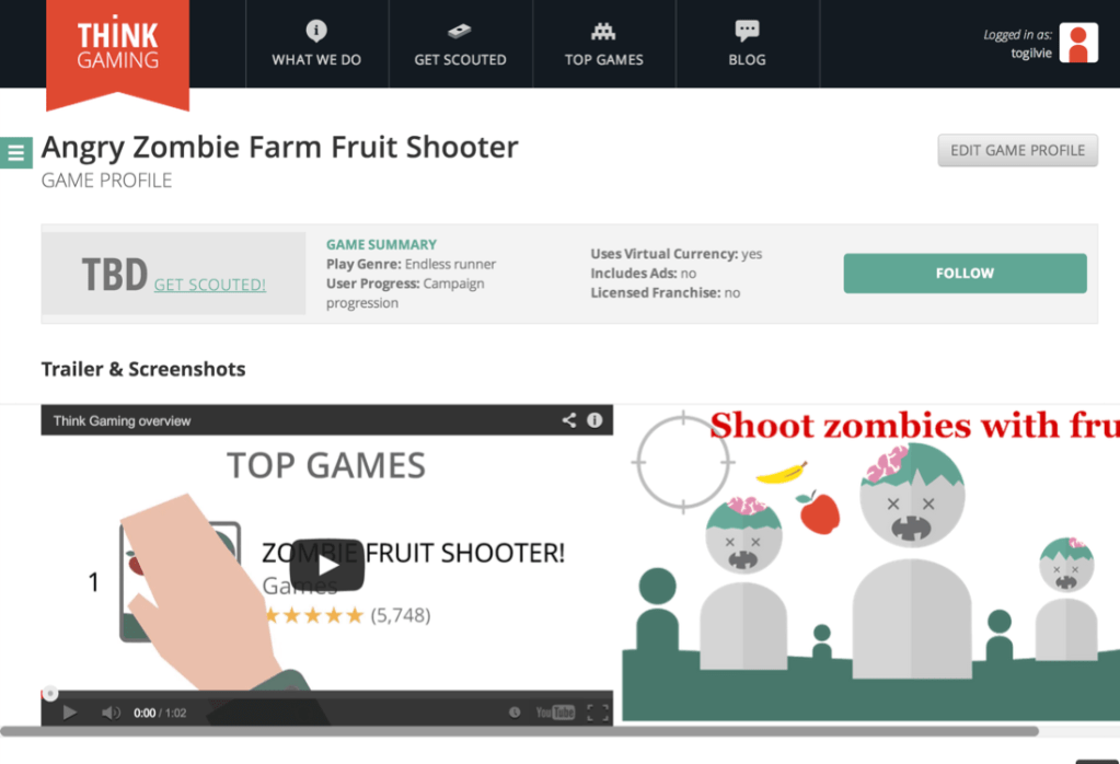 New York City-based gaming analytics company Think Gaming already provides data that should help mobile developers find out how users are interacting with their games and how those games stack up against the competition. Now, with the help of new game profile pages, the company wants to help game developers find potential investors, acquirers, and distribution partners.