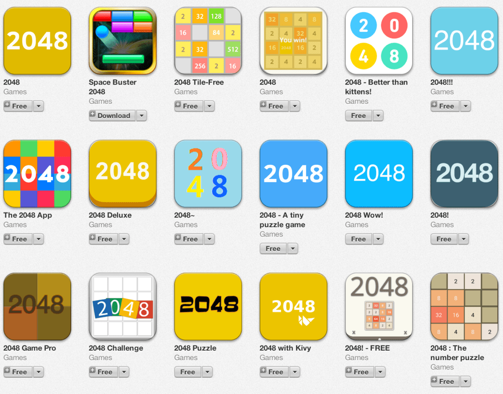 Though the “Flappy Bird” craze may be winding down — currently, there’s only one “Flappy Bird” knock-off in the top 20 on the iTunes App Store — the longer-lasting effects of the viral game and all its many variations that followed, still continue to the point of ridiculousness. Case in point: the latest scourge in mobile app clones is that of a game called “2048,” a “clone of a clone of a clone,” which also has many clones itself.