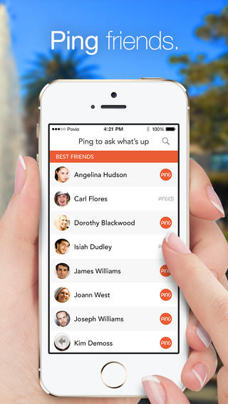 Instead, with Povio, when you’re in the app, you log into your Facebook account and you see a list of your friends who also have Povio. At this point you can “ping” any of them and they’ll get a request from you that lets them easily take a photo and reply back to you.