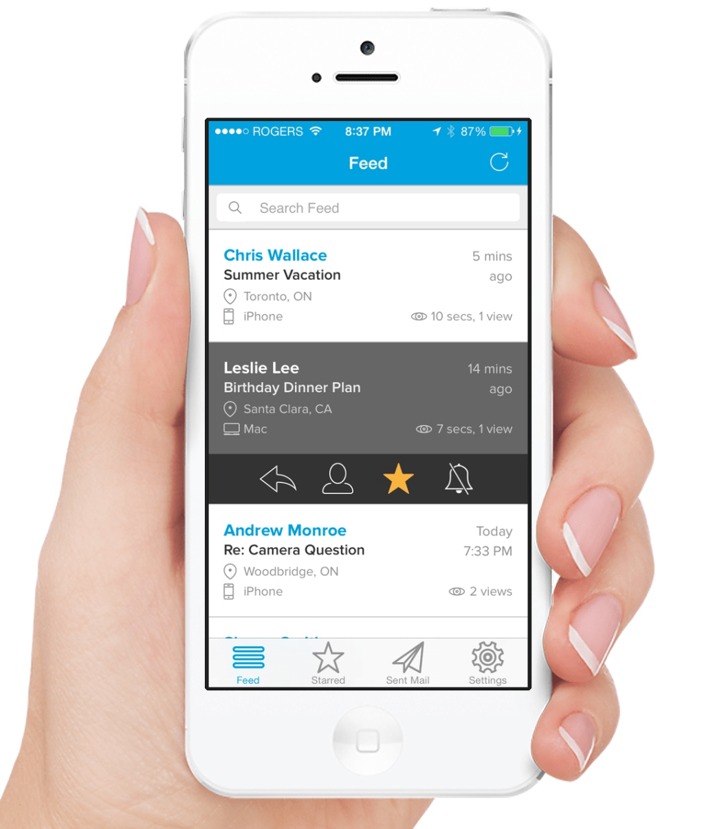 The company is now working on a version for Android and desktop users, due out in a few months, as well as a MailTracker API that will help business customers track not just opens, but also email engagement. The API will rate recipients based on their email opens, how long messages are read, and how many times they read the message.
