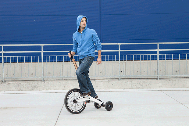 While hanging onto a wooden stick and caroming down a hill doesn’t sound like my idea of a good time, Klenov is convinced. The team came up with the idea while rethinking how the bicycle was designed. By reducing parts and improving efficiency they came up with something that looks like a tricycle with a broom attached. It’s also good for you, apparently.