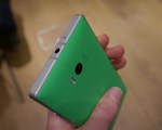 The Lumia 930 has an aluminum unibody design, giving it a solid, premium feel, softened by a plastic rump that comes in a range of vivid colours — including bright orange and the bright green variant pictured below (the green is considerably brighter than it appears in the photo).