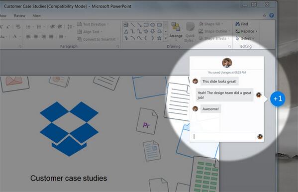 At a press event this morning in San Francisco, Dropbox unveiled a new feature called “Project Harmony” which brings new collaboration tools for Dropbox users while they’re editing documents in Microsoft Office applications including Powerpoint, Word, and Excel.