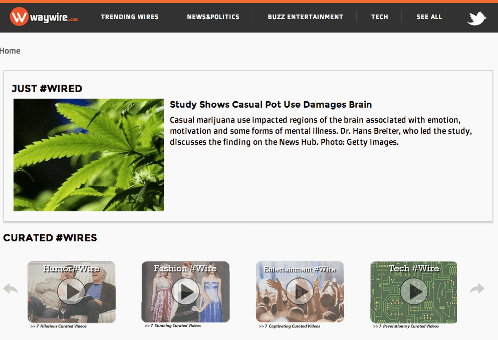 On the content side, the new Waywire has video from hundreds of content providers available, including providers like Conde Nast, Yahoo, AOL, Discovery, BBC and MSNBC.