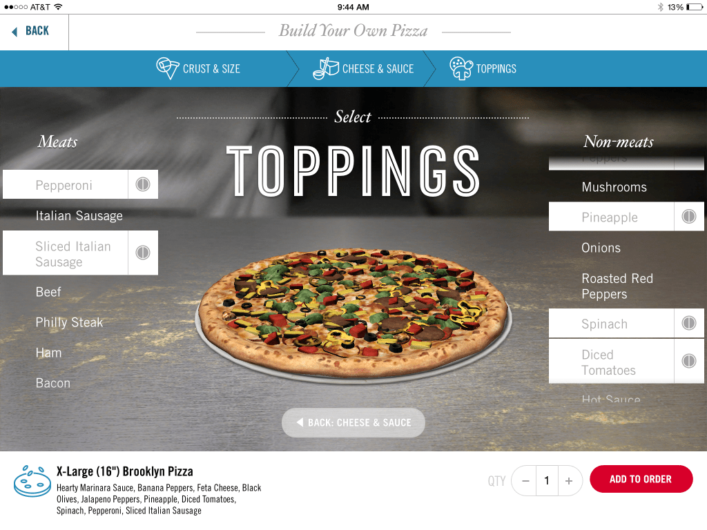 “The new Domino’s iPad app takes the experience of ordering pizza to a whole new level,” said Kevin Vasconi, Domino’s Pizza chief information officer, in a statement. “This is the coolest technology we have launched since Domino’s Tracker, and we are excited for customers to use the beautiful custom pizza builder that lets you visualize your order in a whole new way.”