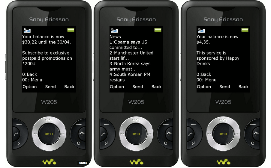 (A typical price differential between mobile data and USSD can be seen in a Myriad USSD service recently launched in Morocco. While some mobile operators are offering Facebook access for 30 dirham per month, USSD is being charged at only 1 dirham per month.)