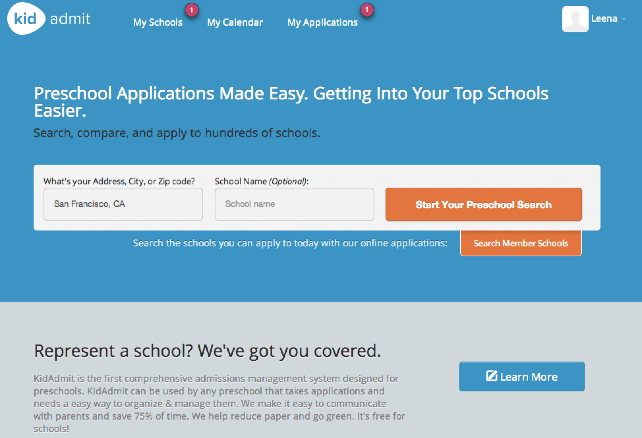 I used KidAdmit for several of my preschool applications for my daughter this past year and found it to be super easy to use. I found myself wishing, however, that every school would sign up with KidAdmit — many do not allow you to apply via the site, but just provide general information. But the startup is working on adding more schools, and like many compelling startups these days, has aimed to solve an offline problem online.
