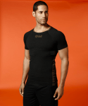 Shirts come in small through extra large sizes, in a few different colors and styles, and are compression garments made with moisture wicking fabric, like high-quality training and running shirts.