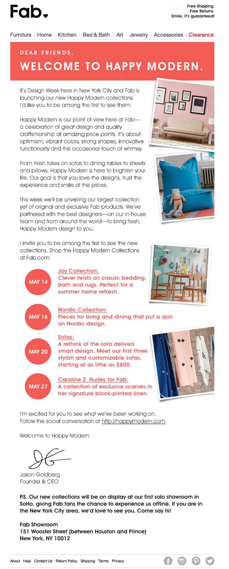 In an email to customers today, Fab introduced the first wave of its new private-label offerings under the “Happy Modern” brand. The products — some of which were designed in-house and some of which were licensed but sold exclusively through Fab.com, are being released under a series of collections designed to appeal to different aesthetic sensibilities.