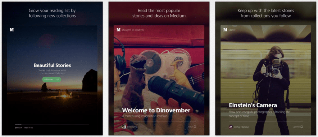 The Medium app for iPad likewise focuses on reading, not writing, and brings in all the same blog content that was available on iPhone and web previously. It groups images into thematic collections, and lets you bookmark and share stuff you enjoy. You can also now follow friends and preferred writers in the app directly and add notes the content recommendations you share justifying your decision to spam.