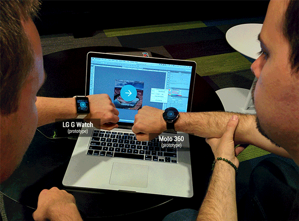 Android Wear is going to be a big part of Google I/O 2014 this year, and Google helps developers acclimate to the idea of wrist-borne apps. Already, internal developers working on the project are working on software to help them demonstrate and validate concepts for apps for the platform, and they’re using the upcoming LG G Watch and Moto 360 to help them prototype.
