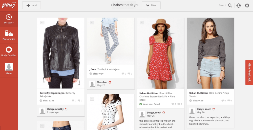 Fitbay uses all these shape, fit and size questions to group its users according to size and fit preference, and to display a personalized feed of branded clothes which it reckons are more likely to fit them.