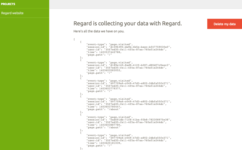 (You can see Regard’s transparent analytics in action on Regard’s own website — after you’ve clicked around on their site a bit click on the ‘My data’ link to view a page showing the data they have amassed on you.)