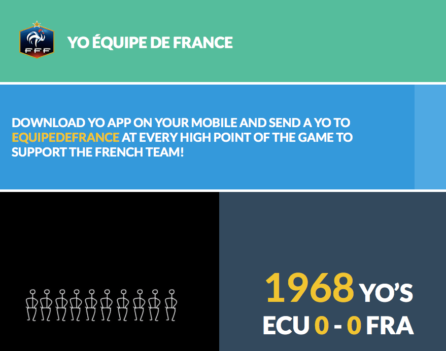 Admittedly, France’s use of Yo isn’t the first time the app has been employed in conjunction with the World Cup — Yo itself has already jumped on the bandwagon. But, the fact this is the French shows how far the Yo meme has traveled. And to think, the app hasn’t even been localised yet!