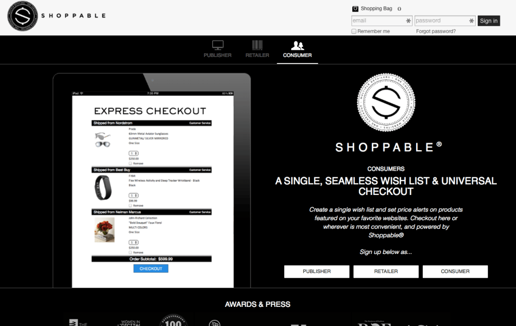 72Lux today announced the launch of Shoppable, a new website and e-commerce platform that allows consumers to manage their shopping wish lists over a variety of retailers and publishers in one place.