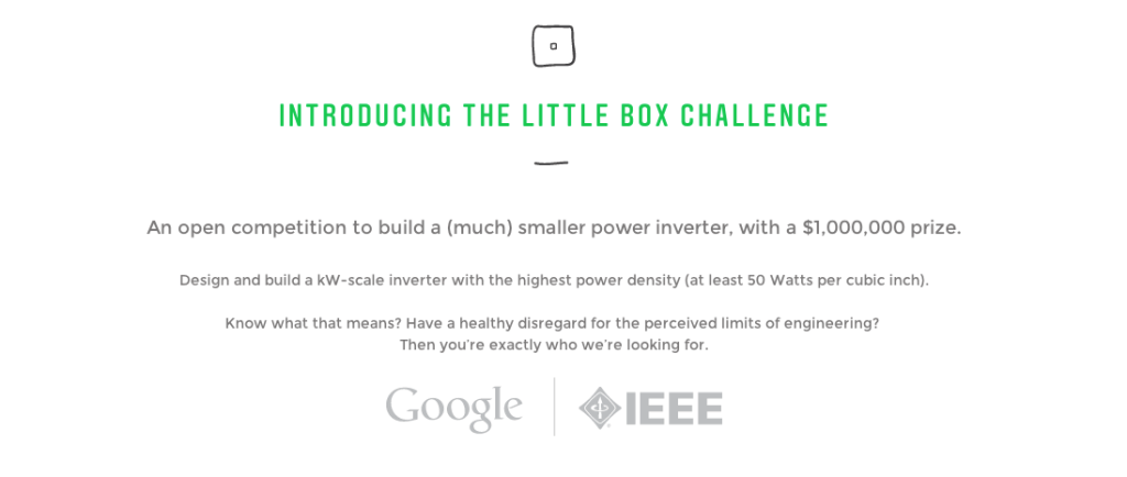 Google opened up applications today for the Little Box Challenge, announced in May, with plans to give away $1,000,000 to the group that can create a smaller and cheaper power inverter.