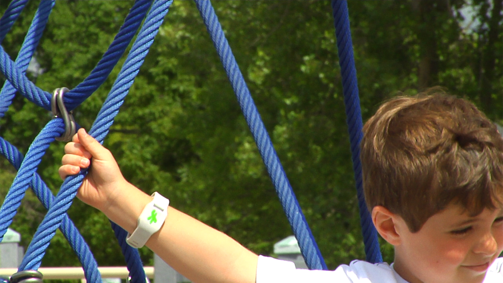 But for parents, the idea is that you could attach the smartband to your child when heading to an area where you know they might get lost or wander off – like crowded amusement parks, busy playgrounds, or when going on shopping mall outings, beach trips, etc. The device is designed to alert you when the child ventures beyond the Bluetooth range of 150 feet, outdoors. (For those of you without spatial intelligence, that’s like half an American football field.)
