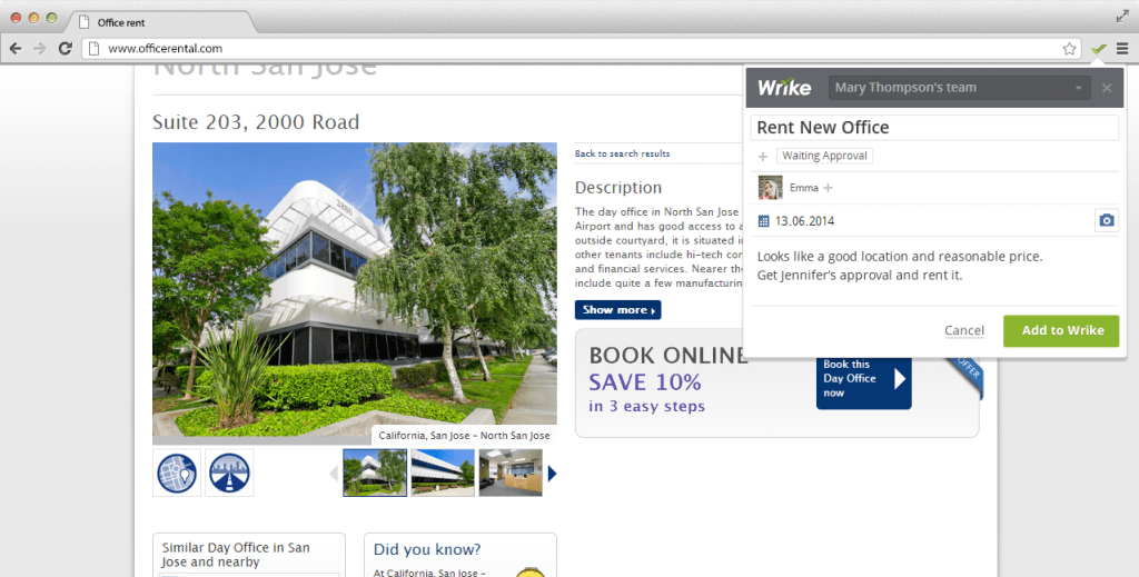 One thing his team realized, for example, was that Wrike’s users spend most of their time either in email, doing online research or using specific tools for tasks like marketing automation. With this update, the company is trying to tie all of these different tasks back into Wrike with the help of a clever Chrome extension that lets users annotate the web.