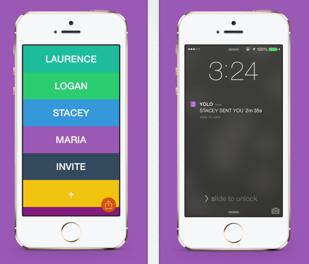 We wouldn’t go quite that far, however. The app’s user interface, like many of Yo’s clones, is nearly identical. It even has a purple app icon. And the concept of pushing a friend’s name to notify them via an audio alert is also something Yo, for better or for worse, helped pioneer. And the name YOLO does have “Yo” in it, I guess.