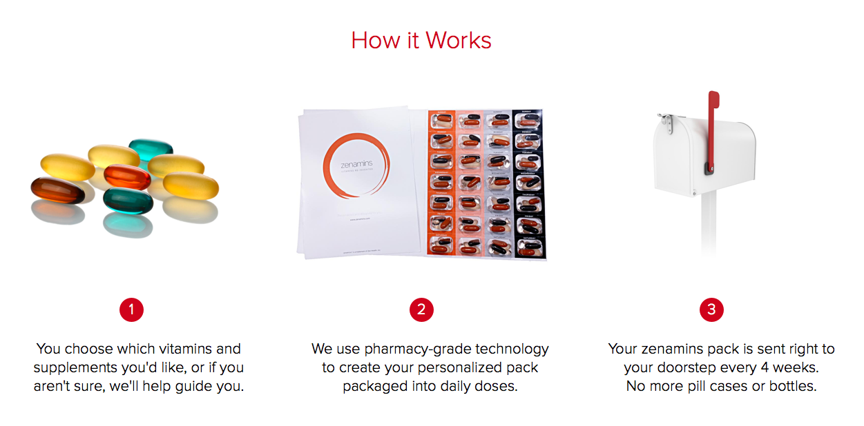 40 million Americans take three or more vitamins a day, yet both the pill bottles and the way we buy them haven’t changed in decades. Well they’re about to, thanks to new Y Combinator startup Zen Health and its customized vitamin pack delivery service Zenamins. Punch in what you already take and answer a few questions and Zenamins will send you a personalized pill pack. Staying fit is tough, but Zen Health wants to make the medicine go down easy.