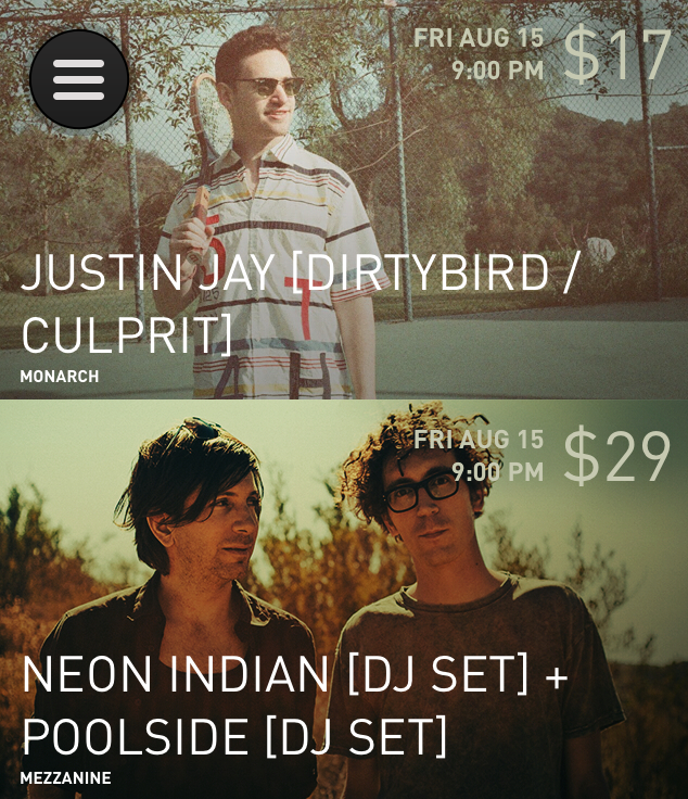 While WillCall started with a very limited selection of shows, they were a curated set of the coolest up and coming bands. Combined with a smart system that would notify your friends when you bought tickets, WillCall built a loyal following amongst concert nuts in SF.