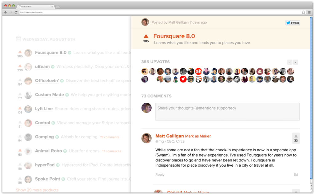 The iOS app features many of the same functions found on the Reddit-like website. Users can see the daily list of trending products, upvote them and comment right from their iPhones. Hoover said they’re currently experimenting with how to use push notifications on the app and connect it with social networks.