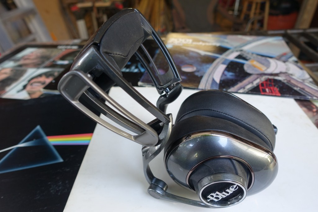 A four-point hinge allows the ear cups to expand parallel no matter how bulbous the wearer’s head happens to be. Blue says this improves audio isolation. Another set of hinges allows the ear cups to pivot downward, rather than sliding down like on most headphones. The differences are subtle when in use, but rather striking, allowing the headphones to sit perfectly.
