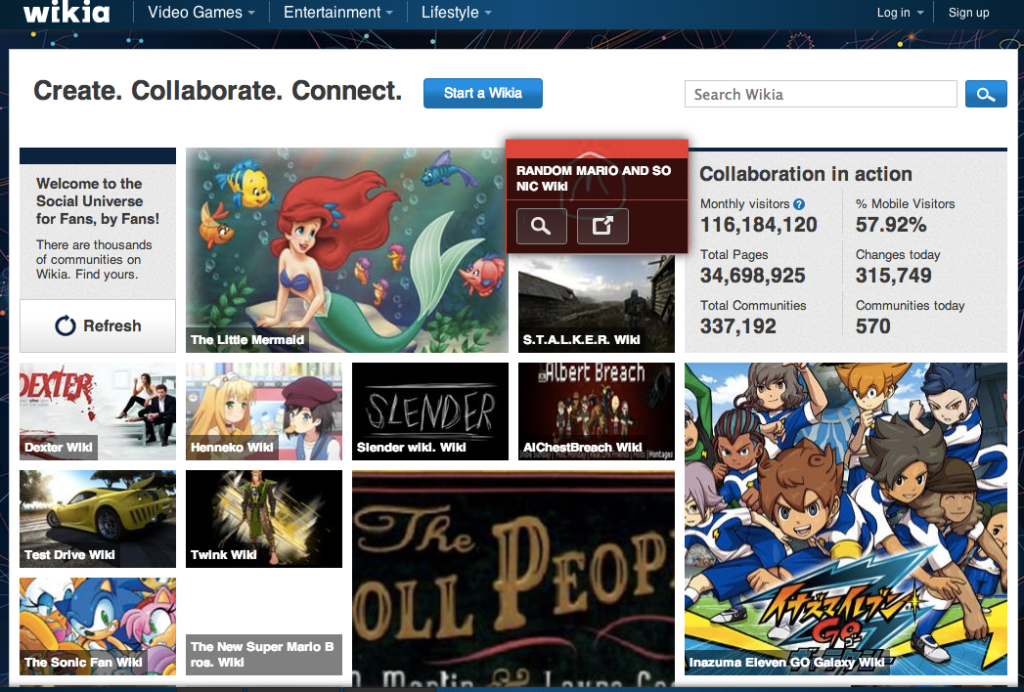 Wikia may not be on the same level as YouTube when it comes to traffic for user-generated content, but it’s huge nonetheless and has a lot of traction with the long tail of special-interest fans, covering all manner of stuff (Little Mermaid lover? Wikia has you covered).